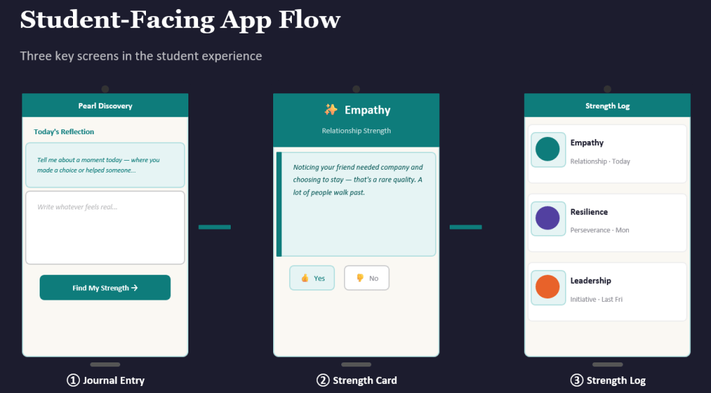 This project proposes an AI-powered journaling feature for Pearl Discovery, a youth coaching platform. The goal is to help students ages 10–16 identify and name their personal strengths through everyday reflection.